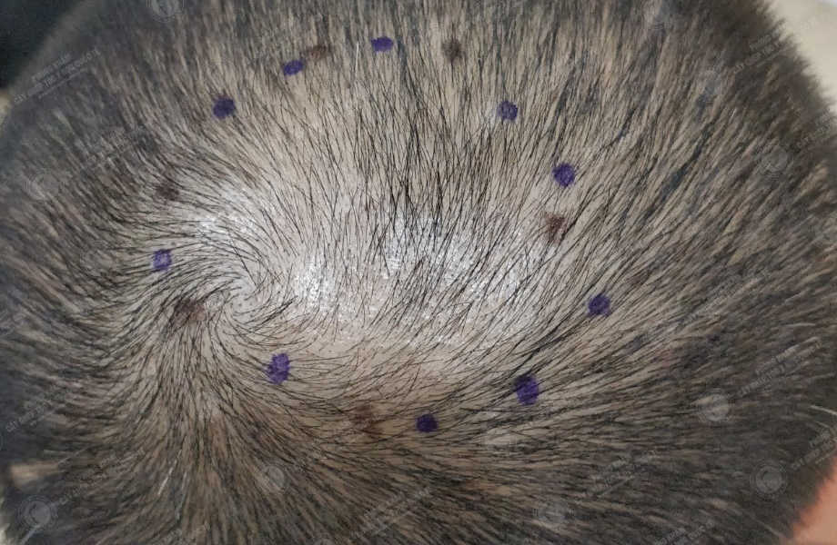 Tình trạng : Tóc thưa đỉnh đầu và hói chữ M